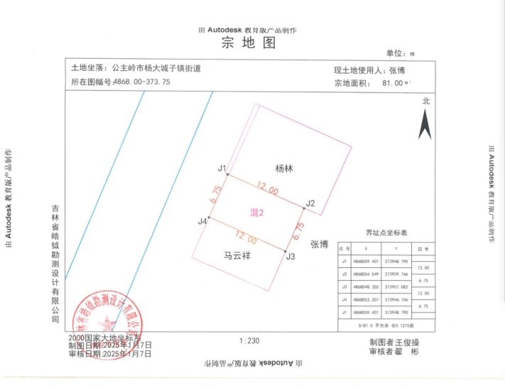 该宗地坐落于公主岭市杨大城子镇街道,占地面积81.0平方米。经调查该宗地四至范围如下图所示,依据《中华人民共和国土地管理法》、《确定土地所有权和使用权的若干规定》,经我局初步审核该宗地为国有建设用地。现将有关确权事宜予以公告,如有异议者,请于公告之日起15个工作日内持有关权属证明材料向我局书面提出申请,逾期无异议或异议不成立,我局将按有关程序依法办理。