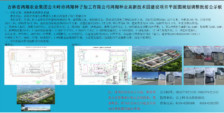 吉林省鸿翔农业集团公主岭市鸿翔种子加工有限公司鸿翔种业高新技术园建项目平面图规划调整批前公示