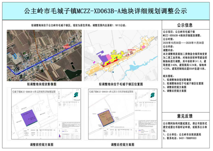 公主岭市毛城子镇MCZZ-XD063B-A地块详细规划调整公示