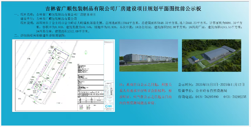 吉林省广顺包装制品有限公司厂房建设项目规划平面图批前公示板