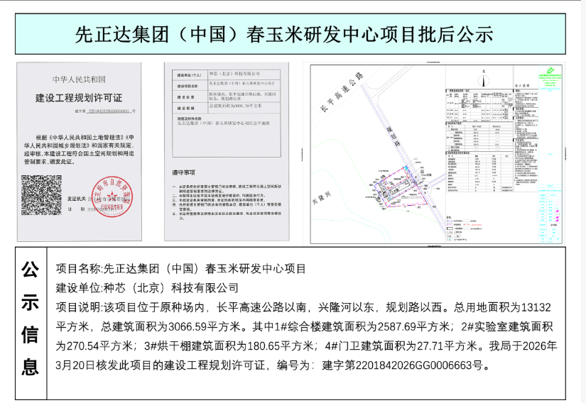 先正达集团(中国)春玉米研发中心项目批后公示