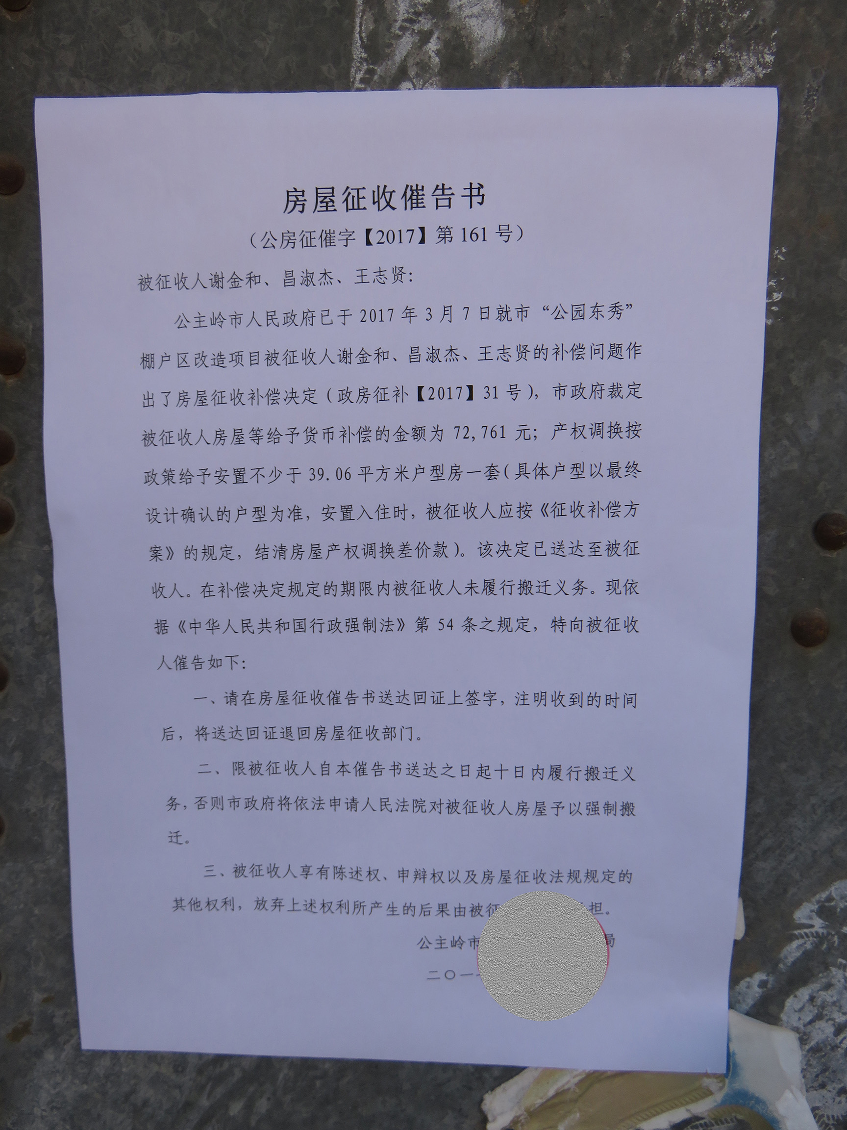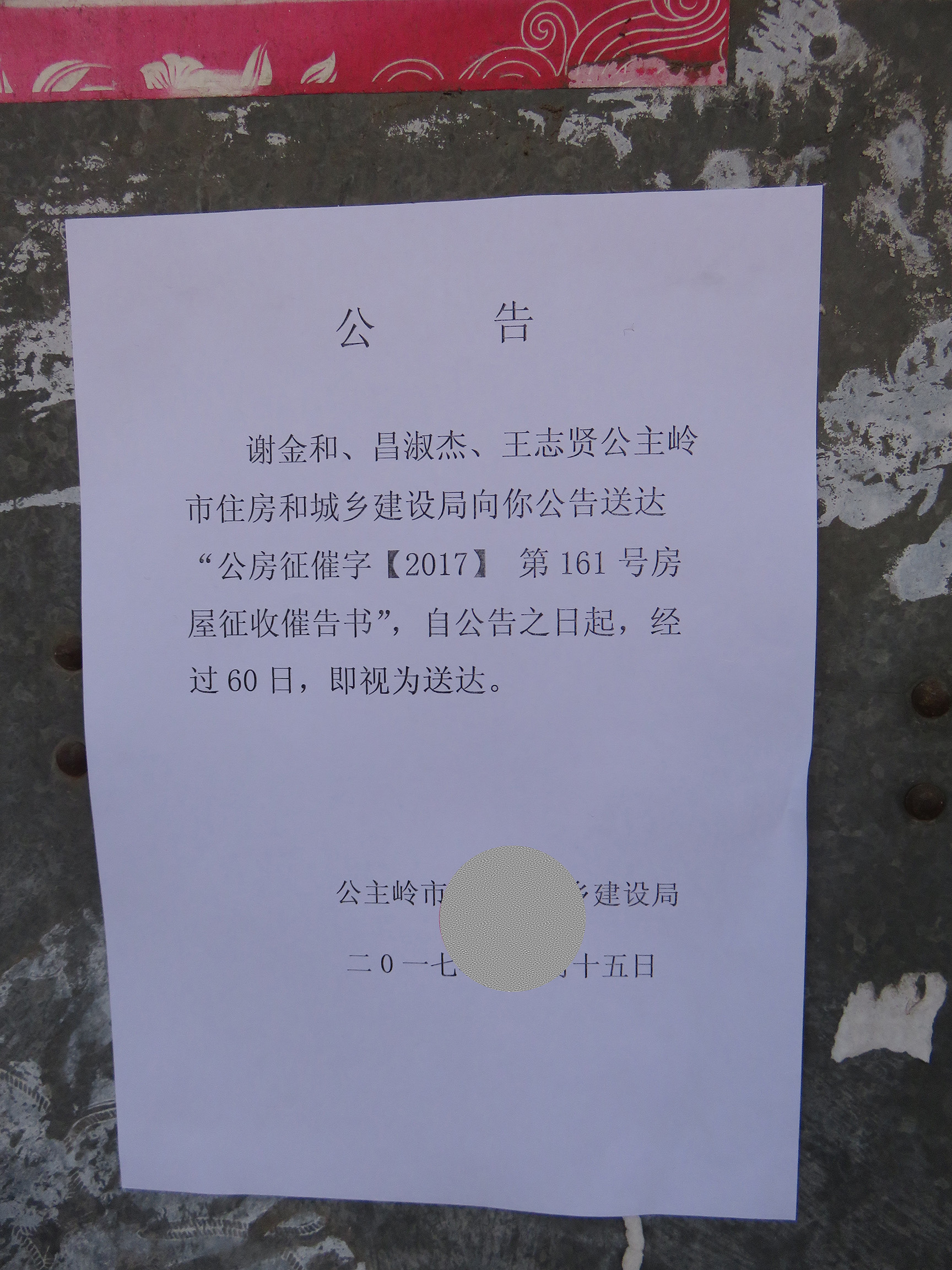 公主岭市“公园东秀”D28-1谢金和催告书公告送达