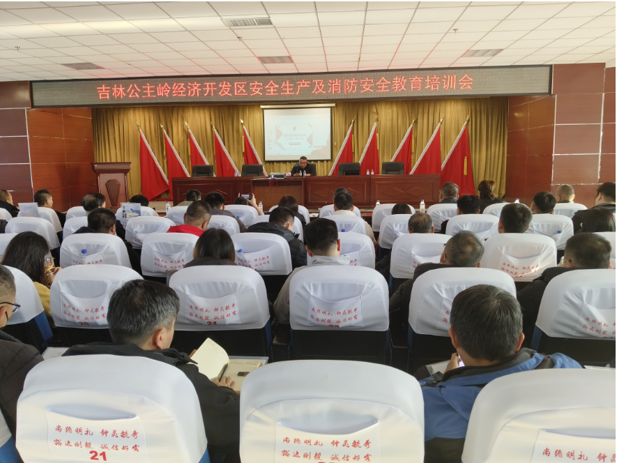 为进一步强化企业落实安全生产主体责任,推动企业负责人和安全负责人深入学习《安全生产法》和《消防法》,为经开区创造良好的营商环境,2023年11月20日,吉林公主岭经济开发区召开了安全生产和消防安全培训会,全区120余家企业参加此次培训会。会议由经开区应急管理局负责人李楠主持,同时邀请公主岭市应急管理局党组成员、副局长孙柏祥、公主岭市消防大队副大队长宫明达和省级安全专家杨鸿波进行授课。