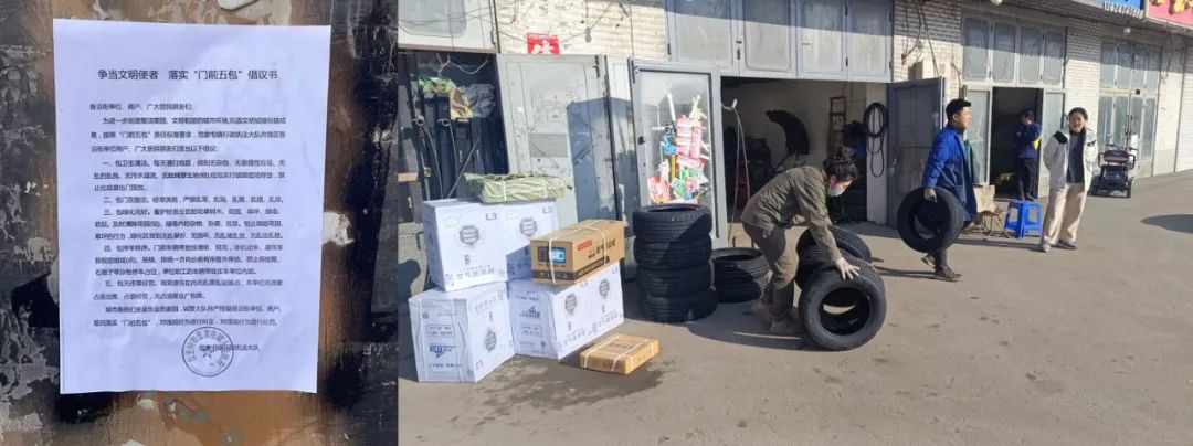 严格落实商户“门前五包”工作,共张贴门前五包通知单1000余户,清理门前摆放杂物及环境卫生800余家,未营业商户联合环卫工人进行集中清扫。