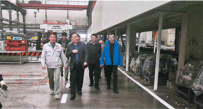 图为在峰璟公司生产车间调研