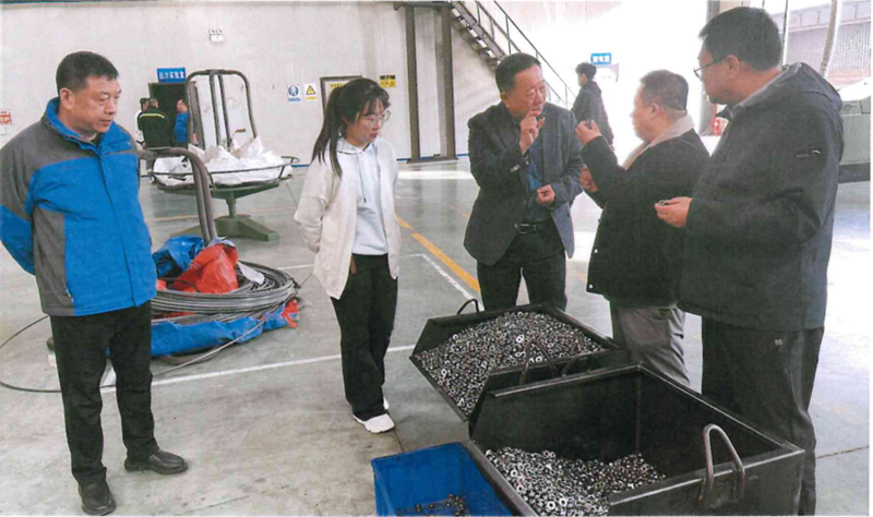 图为在鑫茂公司生产车间调研