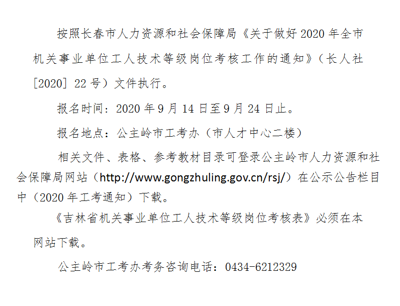 2020年公主岭市机关事业单位工人技术等级岗位考核工作报名说明
