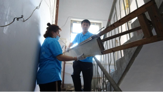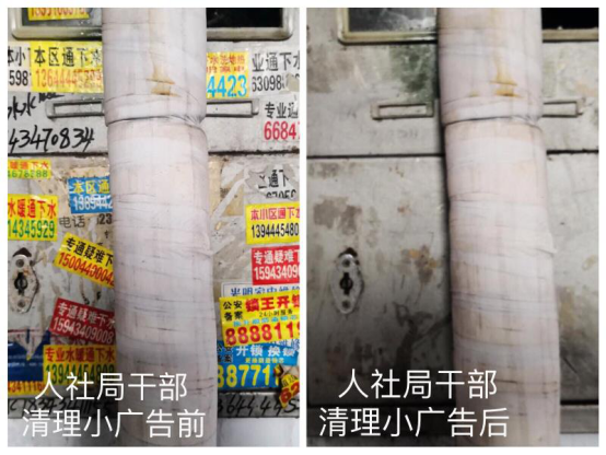 此次整治活动,我局按照科室及人员进行了分组,4人包1个单元,任务到人,责任到人。局办公室印制了传单,准备了工具。喷壶、铲子、壁纸刀、铁屑、扫帚、抹布齐上阵,领导干部带头干,机关职工干劲高,对包保小区公共活动区域、楼道内的灰尘再次进行了打扫清理;对楼道内外墙体喷漆的广告,再次进行清除粉刷;针对楼道内乱堆、乱放的生活杂物,我们逐一将通知单张贴在具体杂物上,限期清理,对期限内不予清理的,将会同社区、城管局共同进行移除。卫生劳动结束后各组互相监督检查,并进行了评比,确保包保小区清洁干净。