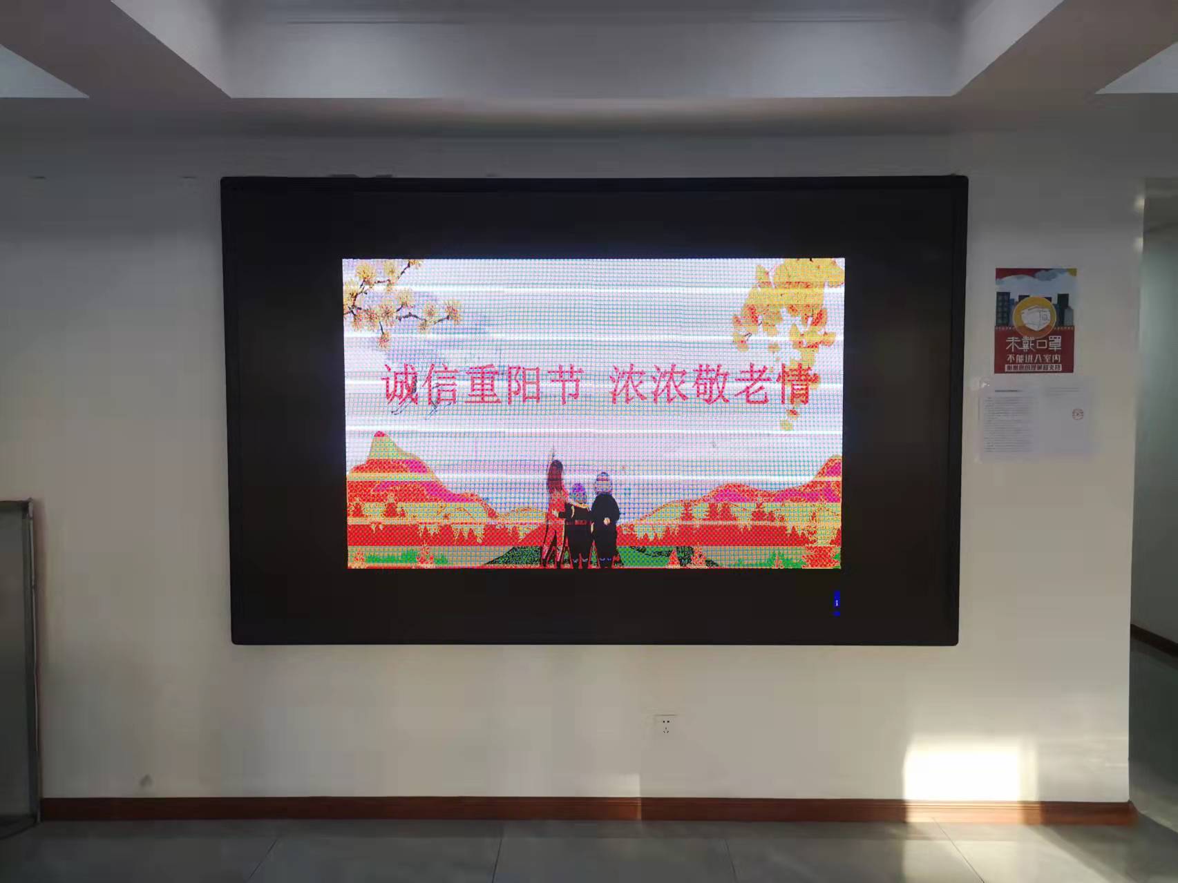 10月15日,正值重阳,宣传屏上滚动播放“九九重阳节,浓浓敬老情,愿每个人都能在诚信的社会环境中度过幸福晚年”,这样的宣传进一步弘扬了中华民族尊老、敬老、爱老的传统美德,又大力弘扬了诚实守信传统美德。