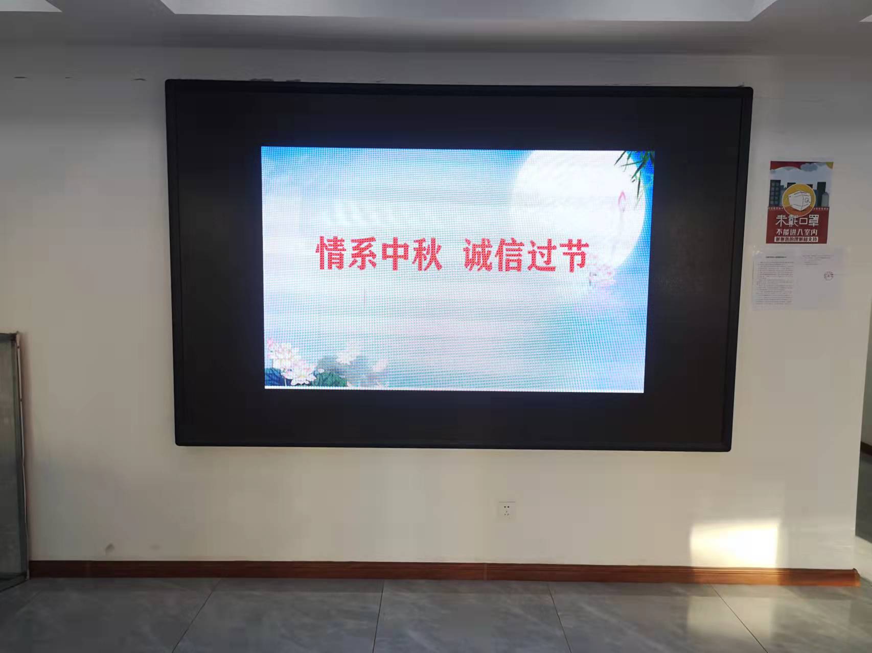 9月22日,在中秋节到来之际,宣传屏上播放“情系中秋,诚信过节”的宣传标语,既有温情又有宣讲,让诚信宣传与生活实际紧密结合在了一起。