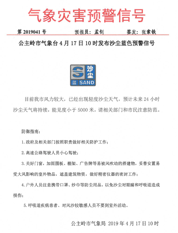 沙尘蓝色预警信号