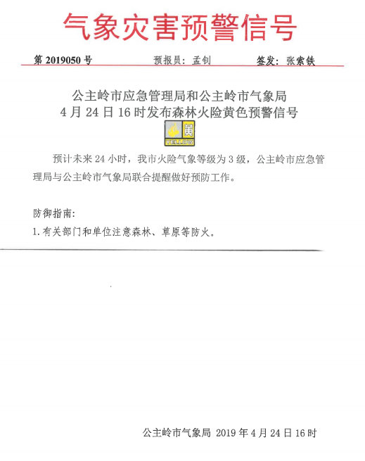 森林火险黄色预警信号