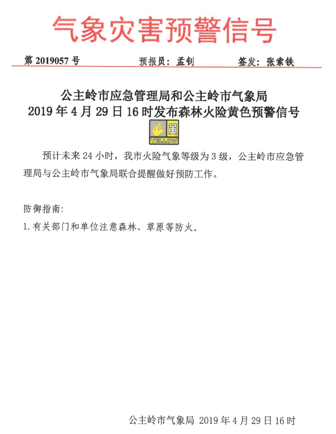 森林火险黄色预警信号