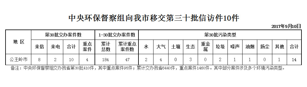 中央环境保护督察组交办公主岭市第30批10件举报受理信访事项