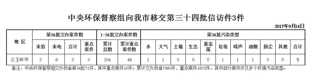 中央环境保护督察组交办公主岭市第34批3件举报受理信访事项