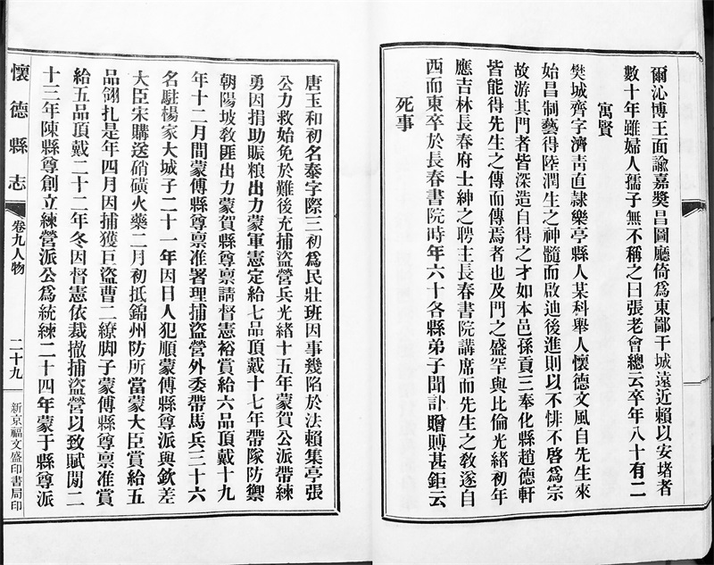 一是光绪三十四年(1908)姚诗馨编著的《怀德乡土志》中记有“刘家屯杨家大城子唐统练击贼”一章。该章节不惜笔墨,详细记述了光绪二十六年(1900年)九月初十日,统练唐玉和率队,早上于三家子刘家屯与70余土匪激战,力歼匪伙,俘获匪首“扫北”后,又急速赶往杨家大城子,与巨匪“三省”所率130多人的匪队死战,虽战马倒毙仍奋勇冲杀,最后取得胜利的全过程。