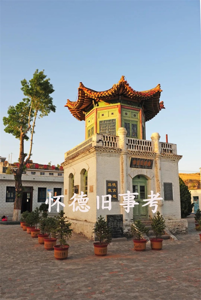 上层八角木亭青砖盖顶,顶端正中饰宝葫芦砖雕,八方柱顶上雕刻龙头流云,八角飞檐向上高翘。檐下有八条横枋,分别刻着“提高地方文化”、“培育国家英才”、“保护公共建设”、“创造育人基础”和“明礼义”、“知廉耻”、“负责任”、“守纪律”的校训。这校训虽然是民国28年由马将军所立,但在82年后的今天,统揽全篇,细细品读,仍然能感觉出怀德首任知县张云祥“以民为本问心立德”施政理念对马占山将军的深刻影响。套用现在一句流行的话来说——也是十分的正能量。