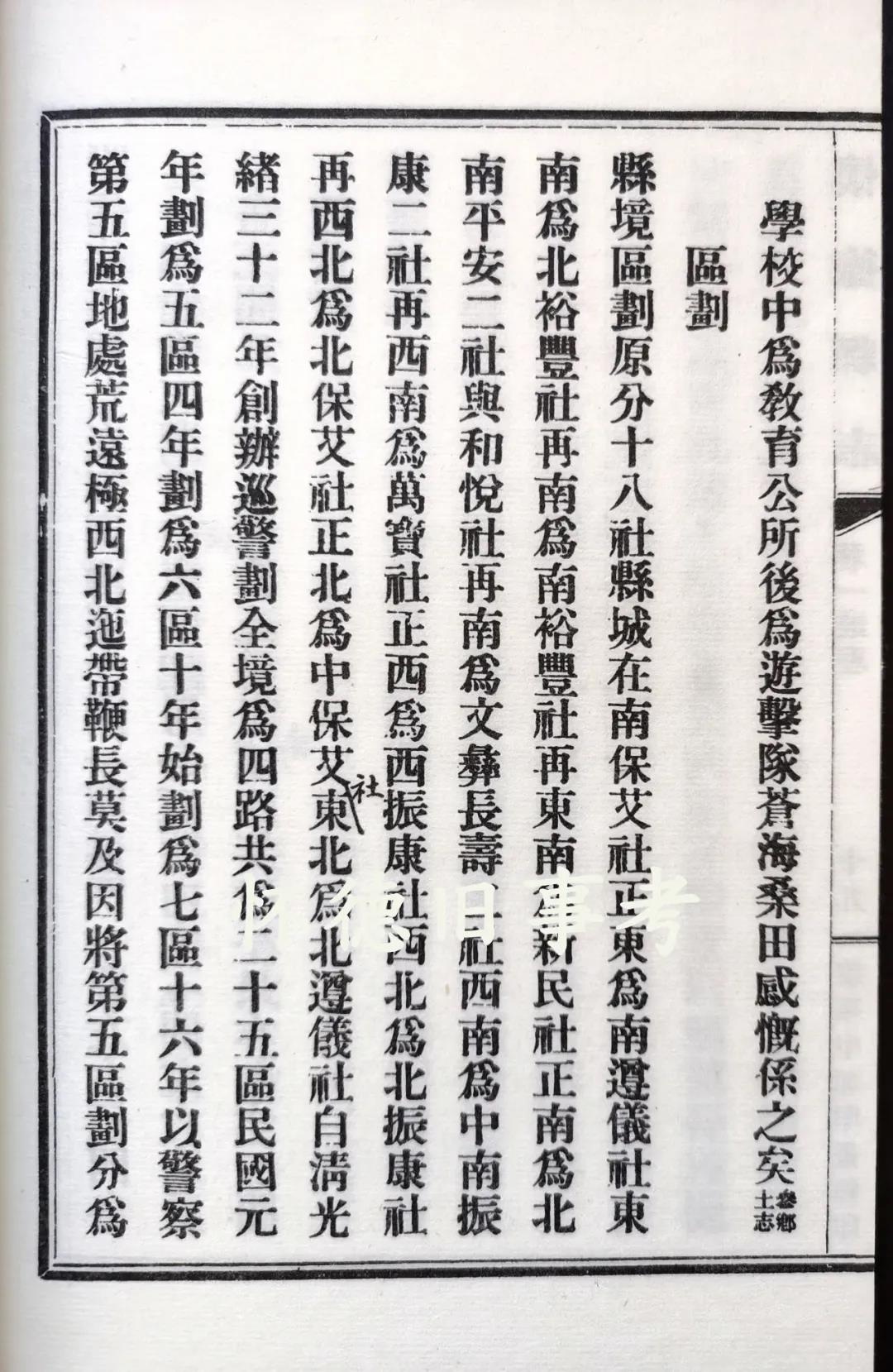 14、北遵仪社、县治东北。东界长春府;南界南遵仪社;西界南保艾、中保艾二社;西北界北保艾社。东南西北八十里,东西十里五六里不等。社内石佛庙距县治四十里。具体范围为现在的双龙镇。