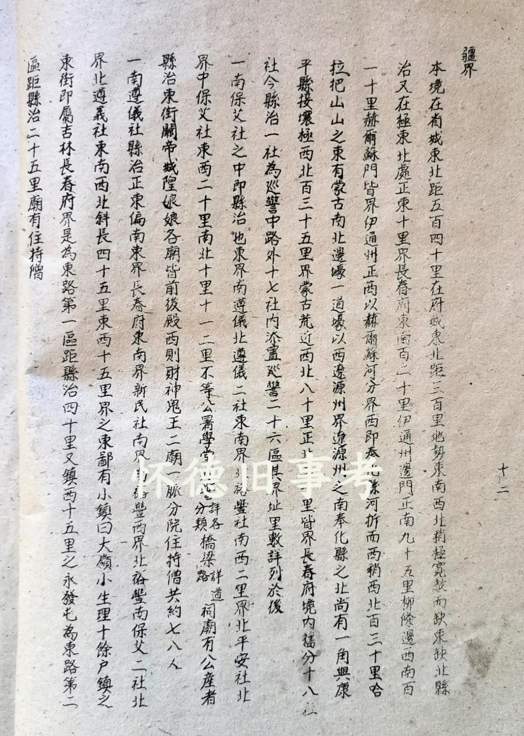 6、新民社、县治东南。东界长春府;南界柳条边;西界南裕丰社;北界南遵仪社。东南西北五十里,东西二十里十里不等。社内姚家烧锅为东路第七区。距县治百一十里。具体范围为现在的响水镇。