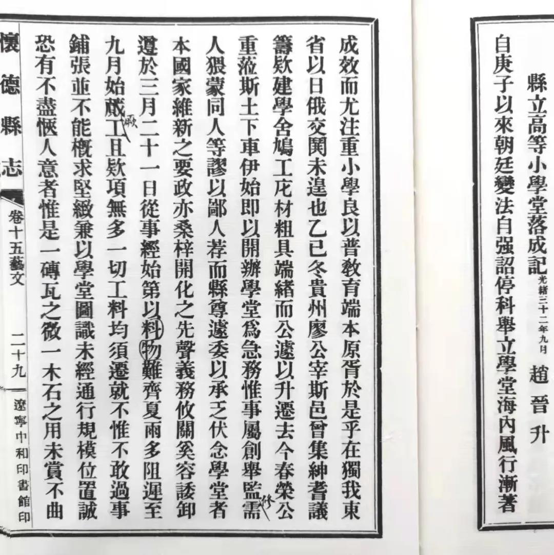“县立高等小学堂落成记 光绪三十二年九月赵晋升